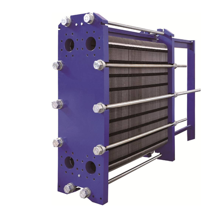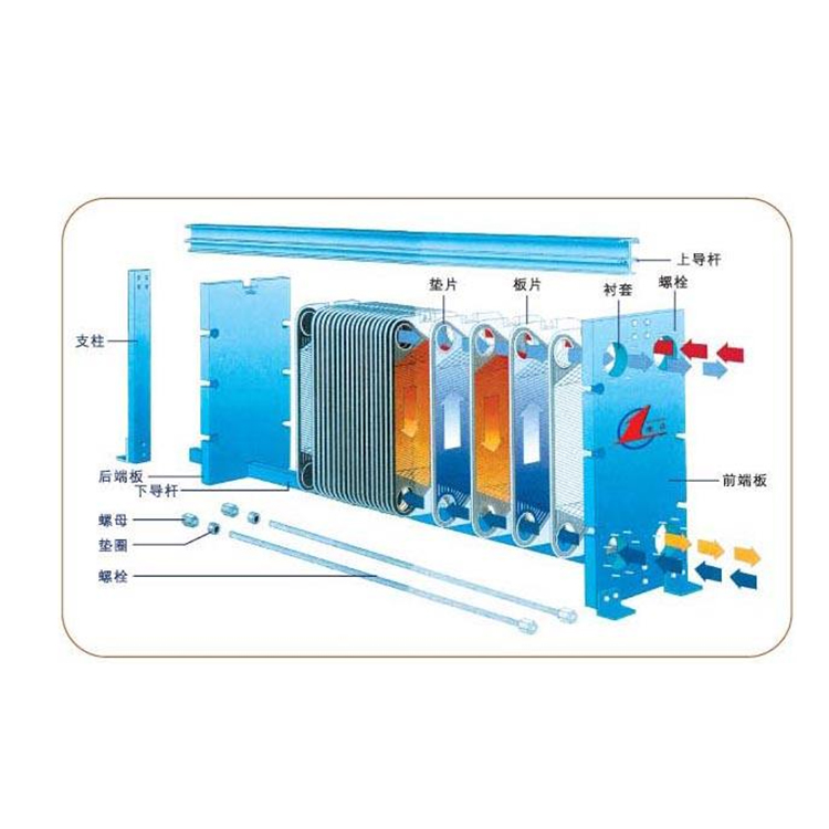 板式換熱器是由具有一定波紋形狀的金屬板片疊裝而成的一種新型高效換熱器,工作介質(zhì)在兩相鄰板片形成的窄小曲折的通道中流過,通過相隔的板片傳熱。